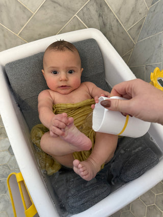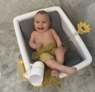 Our patent-pending cushioned bathtub and thoughtfully designed accessories provide a calm, secure, and sustainable bath time experience for your little one.